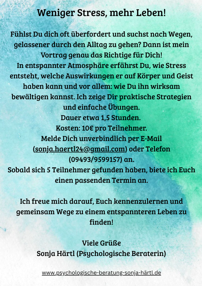 Im Laufe der nächsten Wochen würde ich Euch gerne einen Vortrag zum Thema Stress anbieten.